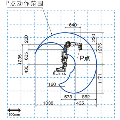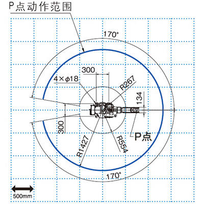 注1:位置重復(fù)精度遵照JIS B 8432 是標(biāo)準(zhǔn)的工具中心點(diǎn)(TCP)測量值注2:第6軸的動作范圍可能因第5軸的姿勢而受到限制注3:上部手臂可搬重量隨著可搬重量可以變化注4:需要側(cè)掛、吊裝規(guī)格時(shí)請咨詢我司銷售人員