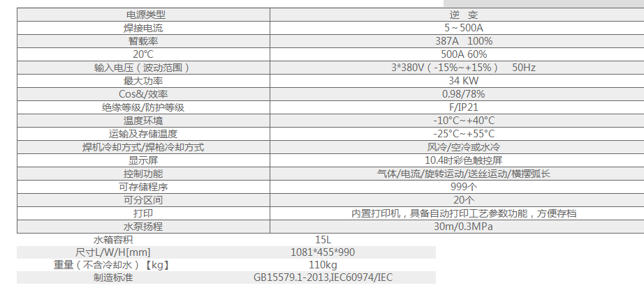 具有引弧失敗、工件短路、過(guò)溫、過(guò)壓、缺氣、缺水、欠壓、熄弧、通訊異常等故障實(shí)時(shí)檢測(cè)及反饋功能具有し盤程序?qū)?、?dǎo)出功能,方便替換焊接工藝程序;