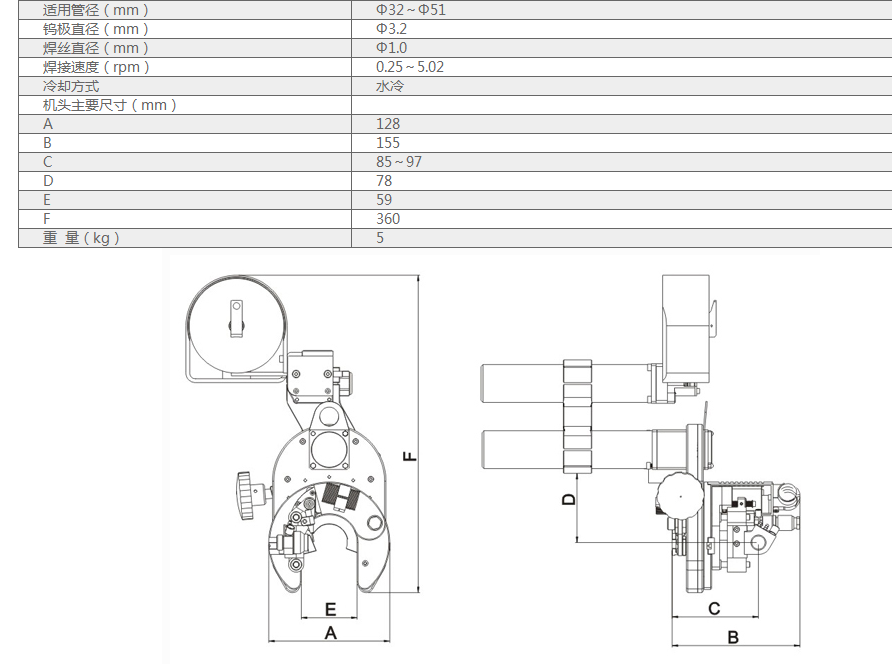 采用無間隙齒輪傳動設(shè)計,旋轉(zhuǎn)平穩(wěn)、轉(zhuǎn)動慣量小,且在高溫工作環(huán)境小,無卡阻現(xiàn)象;電動弧長橫擺設(shè)計,道合多道焊接工藝要求適用中厚壁碳鋼、不繡鋼材質(zhì)的管道焊接循環(huán)水冷,連續(xù)工作時間長;可自焠、加絲焊接;